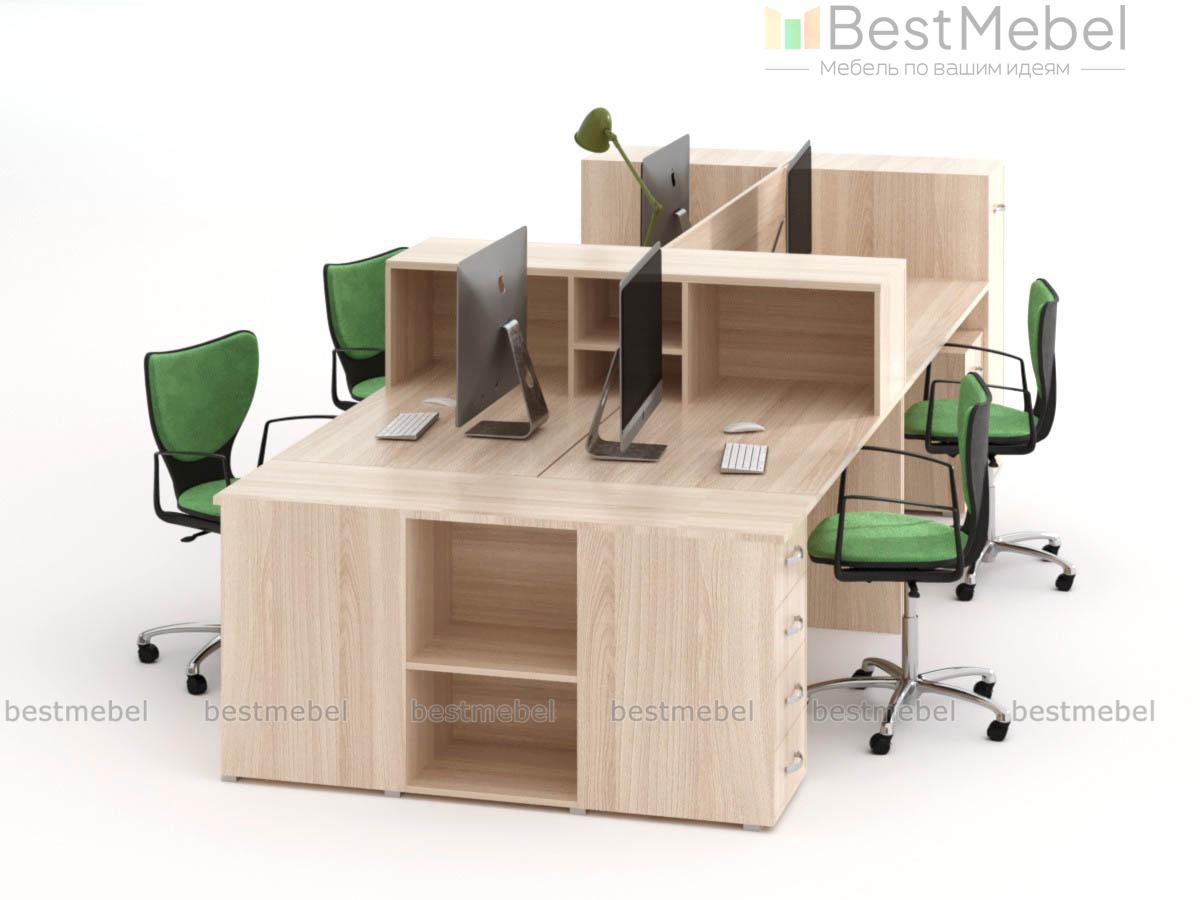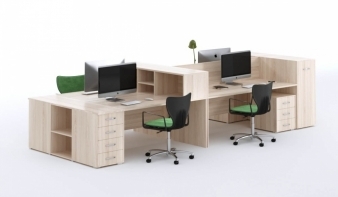 Бенч-система Тим 11 BMS поможет оборудовать комфортные рабочие места в офисе открытого типа. Конструкция представляет собой комбинацию просторных прямоугольных столешниц и тумб, оборудованных выдвижными ящиками и нишами для документов и канцелярских мелочей. В центральной части модели для зонирования используется мини-стеллаж с открытыми полками. Строгий функциональный дизайн и цветовое решение в светлых древесных тонах легко впишутся в современные интерьеры. Купить бенч-систему Тим 11 BMS приглашаем в наш интернет-магазин.