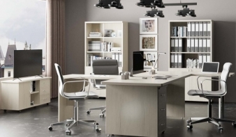 Кабинет руководителя Греция 7 BMS поможет вам оборудовать помещение в едином стиле. Композиция объединила рабочий стол с приставным брифингом и мобильной тумбой, широкую сервисную тумбу и два вместительных комбинированных шкафа для документов с застекленными полками. Выполненные в светлых древесных тонах, простые и функциональные, предметы универсальны для современных офисных интерьеров. Купить кабинет руководителя Греция 7 BMS приглашаем на сайт нашего интернет-магазина.