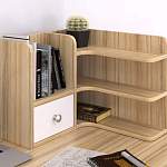 Надставка для стола Дуо 8 BMS выполнена в сочетании светлых древесных тонов и белого и гармонично дополнит столы аналогичного дизайна. Угловая форма модели позволяет эффективно использовать пространство и сделать рабочее место эргономичным. Для удобного хранения книг, папок и канцелярских мелочей надставка оборудована открытыми полочками и выдвижным ящиком, углы изделия безопасно скруглены. Купить надставку для стола Дуо 8 BMS вы сможете недорого в нашем интернет-магазине.