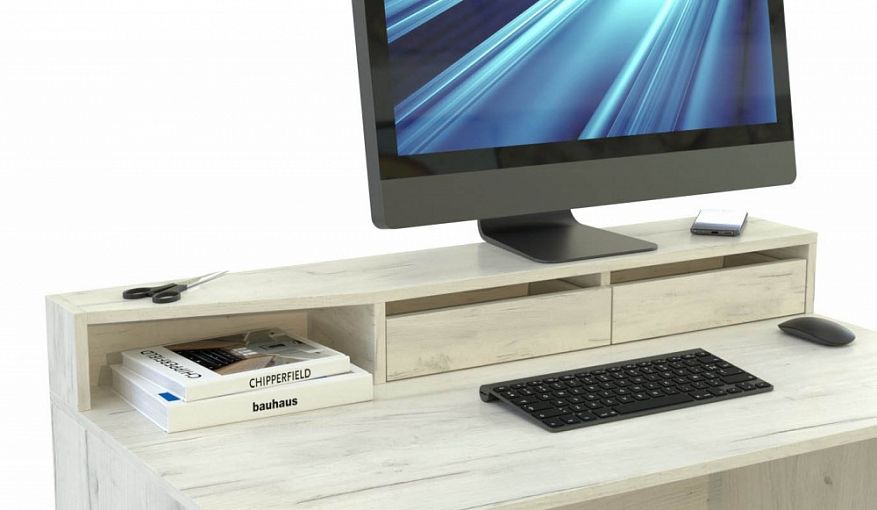 Подставка под монитор Шарм-5 BMS сделает работу или учебу более продуктивной. Выполненная в древесных тонах в тон корпусу, подставка располагается по всей ширине рабочего стола. Модель оборудована просторной столешницей, на которой достаточно места для монитора и периферийных устройств, двумя выдвижными ящиками для канцелярских мелочей и скошенным открытым отделением. Купить подставку под монитор Шарм-5 BMS вы сможете в нашем интернет-магазине с выбором цвета и размеров.