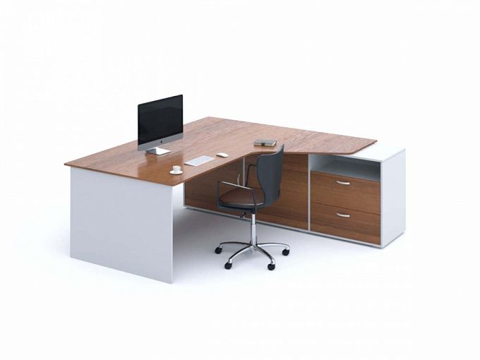 Стол Эрго-2 BMS выглядит солидно и современно, воплощая в оригинальном дизайне все необходимое мебели для кабинета руководителя. Комплект, выполненный в актуальном сочетании древесных тонов под массив ореха и белого, включает в себя письменный стол с просторной столешницей эргономичной формы и опорную тумбу. Комбинированная тумба оборудована открытыми полками, выдвижными ящиками и распашными дверцами, обеспечивая высокую функциональность. Купить стол Эрго-2 BMS вы сможете в нашем интернет-магазине с учетом необходимых параметров.