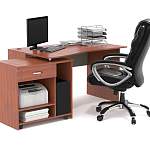 Стол Mega-Style М226 BMS оборудован всем необходимым для полноценной работы. Модель имеет просторную, эргономично вырезанную столешницу, один край которой опирается на приставную офисную тумбу с колесиками. Оборудованную выдвижным ящиком и тремя открытыми секциями под системный блок, принтер и расходные материалы, тумбу можно разместить вдоль стола или под углом - для зонирования пространства. Купить стол Mega-Style М226 BMS вы сможете в нашем интернет-магазине, подобрав цвет и размеры.