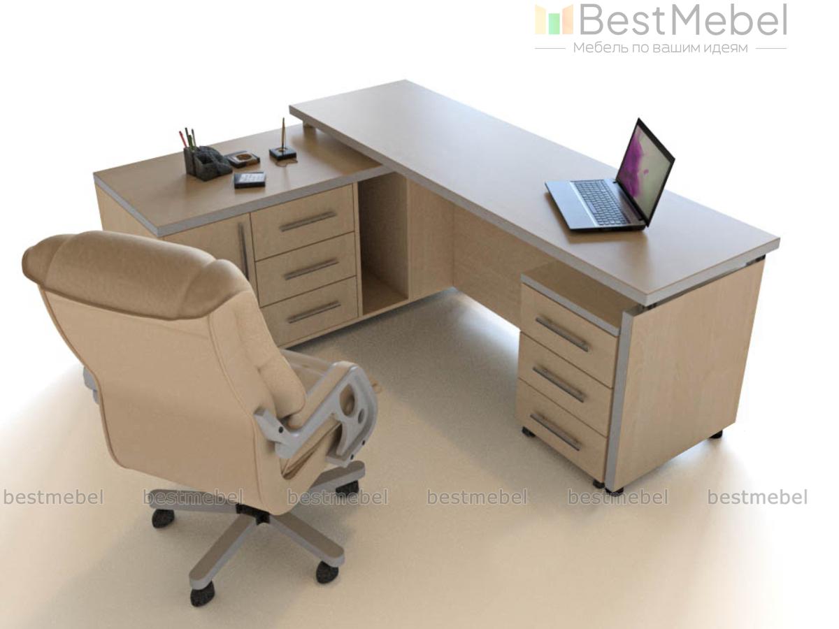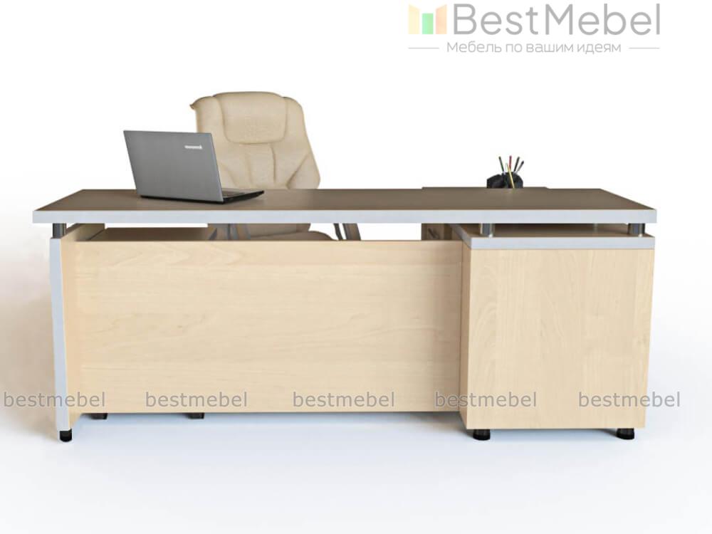 Стол руководителя Эдди 2 BMS характеризуется компактными размерами и отличной эргономикой, что делает его прекрасным выбором для небольших кабинетов или офисов открытого типа. Современная модель в светлых древесных тонах с кромкой и фурнитурой оттенка серебро отличается лаконичностью линий и функциональностью каждого элемента. Под просторной столешницей располагаются сразу две тумбы – классическая с выдвижными ящиками и широкая, дополненная распашным отделением и нишей под системный блок. Купить стол руководителя Эдди 2 BMS приглашаем в наш интернет-магазин.