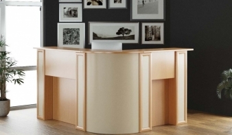 Стойка ресепшн Лайн 4 BMS сочетает в себе оригинальный современный дизайн, функциональность и будет востребована как в небольшой приемной, так и в просторном холле. Угловая радиусная модель оборудована столешницей для посетителей, достаточно широкой для размещения информационных материалов и письменных принадлежностей, и расположенным с внутренней стороны рабочим местом администратора. Выполненная в теплой бежевой гамме, стойка с декоративными элементами привлекает к себе внимание. Купить стойку ресепшн Лайн 4 BMS вы сможете в нашем интернет-магазине.