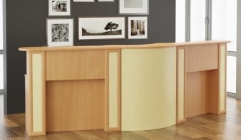 Стойка ресепшн Лайн 5 BMS - полукруглая модель, оптимальная для просторных холлов. Оригинальная стойка, выполненная в древесных тонах с декоративными выступами на фасаде, станет лицом успешной компании. Для удобного общения с посетителями, размещения письменных принадлежностей и информационных материалов предусмотрена просторная, скругленная по углам столешница, а с внутренней стороны располагаются рабочие столы для администраторов. Купить стойку ресепшн Лайн 5 BMS приглашаем в наш интернет-магазин.