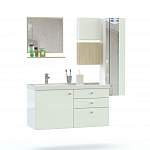 Комплект для ванной Апрель 4 BMS состоит из подвесных геометричных модулей, выполненных в контрастных цветах. Композиция включает в себя широкую тумбу под раковину, зеркало с полочкой для мелочей, пенал и распашные шкафчики кубической формы. Благодаря продуманному сочетанию элементов вы сможете создать комфортный современный интерьер, разместив под рукой необходимые гигиенические принадлежности. Купить комплект для ванной Апрель 4 BMS приглашаем в наш интернет-магазин с учетом оптимальных параметров.