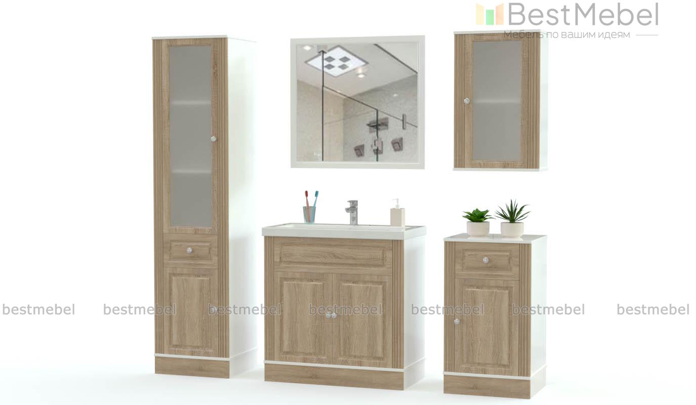 Комплект для ванной Фруст 4 BMS поможет создать респектабельный классический интерьер. Элегантная композиция включает в себя распашную тумбу под раковину, навесное зеркало в раме, тумбу и комбинированный с витриной пенал, а также застекленный шкафчик для удобного хранения гигиенических принадлежностей. Фрезерованные рамочные фасады выполнены в теплых древесных тонах, делая атмосферу в помещении особенно комфортной. Купить комплект для ванной Фруст 4 BMS приглашаем в наш интернет-магазин, подобрав фурнитуру и цвет по каталогу.