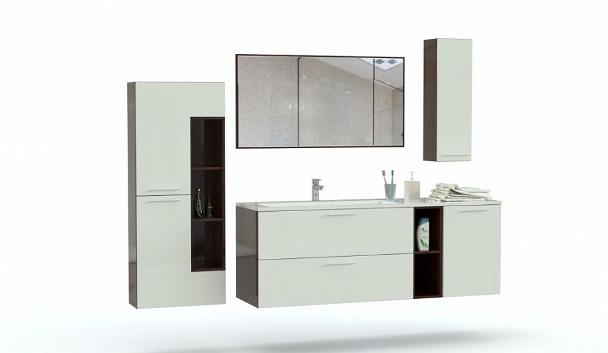 Комплект для ванной комнаты Плайн 1 BMS поможет организовать удобное хранение гигиенических принадлежностей и сделает уход за собой комфортным. Эффектная модульная композиция включает в себя широкую тумбу под раковину с выдвижными ящиками, нишами и распашным отделением, зеркальный шкаф с подсветкой, пенал и шкаф, комбинированный с открытыми секциями. Подвесные модули выполнены в трендовой бело-черной гамме. Купить комплект для ванной комнаты Плайн 1 BMS приглашаем в наш интернет-магазин, подобрав цвет и фурнитуру.