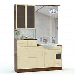 Комплект для ванной комнаты Рикко 4 BMS состоит из тумбы под раковину с распашными и выдвижными отделениями, высокой тумбы, большого зеркала с подсветкой, открытых полок для хранения мелочей и застекленного шкафа. Продуманная до мелочей система хранения позволит вам компактно разместить средства личной гигиены, текстиль и бытовую химию. Корпус в древесных тонах дополняют светлые влагостойкие фасады. Купить комплект для ванной комнаты Рикко 4 BMS приглашаем в наш интернет-магазин с подбором оптимального цвета и фурнитуры.