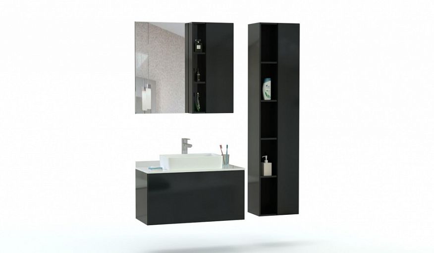 Комплект для ванной Рейно 3 BMS олицетворяет последние дизайнерские тенденции и станет прекрасным выбором для просторной комнаты. В состав модульной композиции входят широкая тумба под накладную раковину-чашу, зеркало с боковым шкафчиком для хранения мелочей, а также комбинированный с открытыми полками пенал. В оформлении модулей сочетаются черный и белый, подчеркивая строгую геометрию линий. Купить комплект для ванной Рейно 3 BMS вы сможете на сайте нашего интернет-магазина.