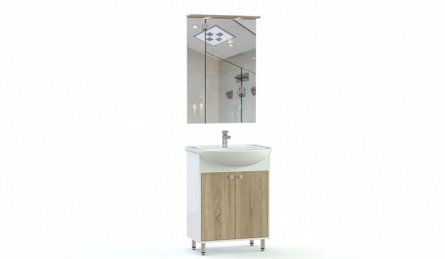 Комплект для ванной Сакура 2 BMS станет частью по-восточному лаконичного интерьера. Подвесная композиция включает в себя тумбу под полувстраиваемую раковину, оборудованную двухдверным распашным отделением для хранения гигиенических принадлежностей, и большое прямоугольное зеркало с козырьком. В оформлении предметов скомбинированы темные древесные тона и белый, подчеркивая строгую простоту линий. Купить комплект для ванной Сакура 2 BMS по доступной цене вы сможете в нашем интернет-магазине.