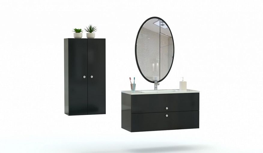 Комплект для ванной Шайн 6 BMS, выполненный в стиле модерн, будет эффектно смотреться в просторной комнате. Композиция включает в себя широкую тумбу под раковину с двумя выдвижными ящиками, двухдверный шкаф и большое овальное зеркало. Фасады в черном глянце с хромированными ручками-кнопками легко моются и надолго сохраняют эстетичный вид, а подвесная конструкция модулей облегчит уборку в помещении. Купить комплект для ванной Шайн 6 BMS вы сможете в нашем интернет-магазине с выбором цвета и фурнитуры.