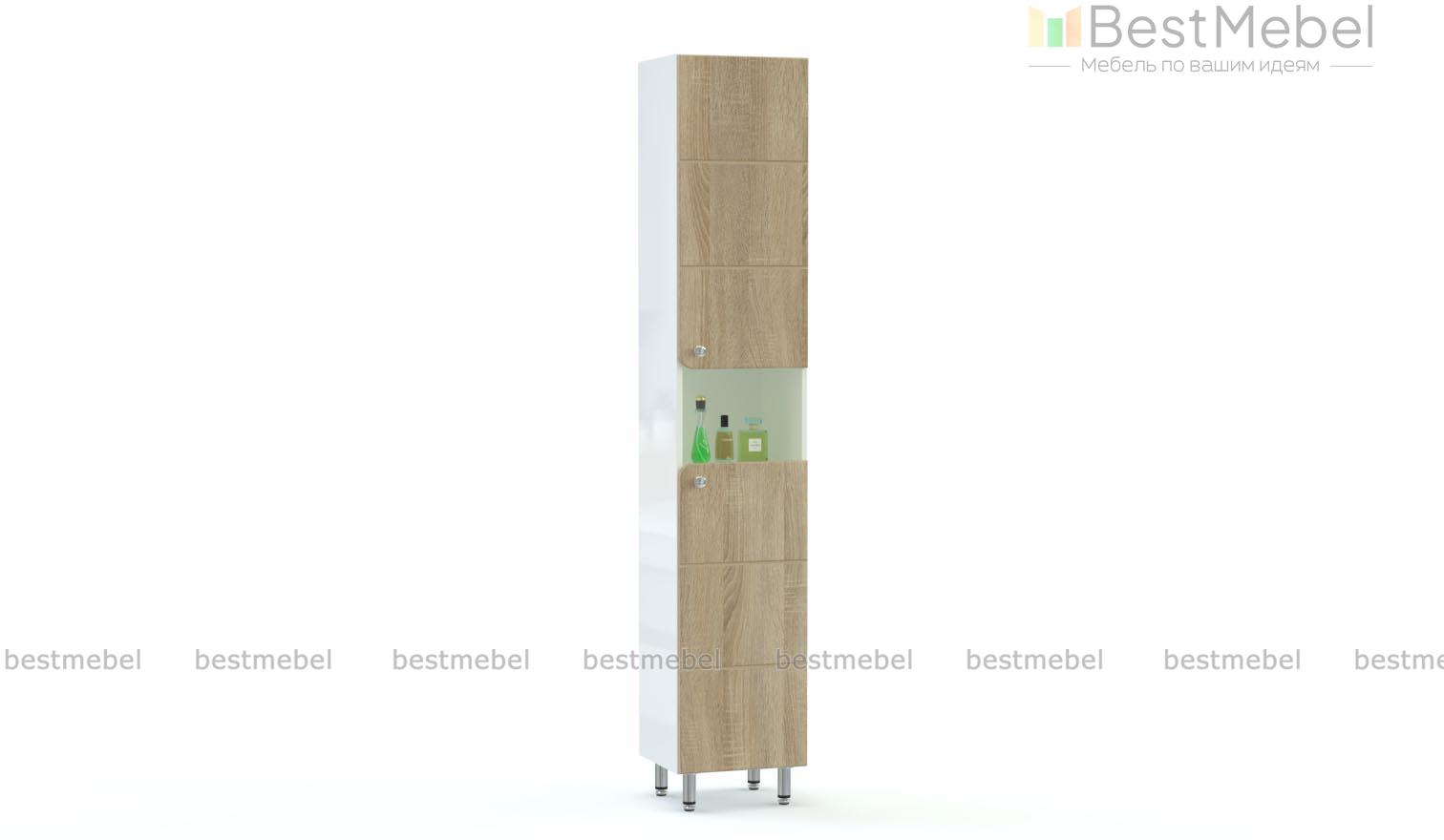 Пенал для ванной комнаты Клео 6 BMS экономно использует пространство за счет небольшой ширины. Пристенная модель располагается на регулируемых хромированных опорах и выполнена в актуальном сочетании черного и белого, дверцы скруглены по углам и декорированы горизонтальной фрезеровкой. Компактно разместить все необходимые уходовые средства и аксессуары помогут вам два распашных отделения с полками и ниша в центральной части. Купить пенал для ванной комнаты Клео 6 BMS приглашаем в наш интернет-магазин.