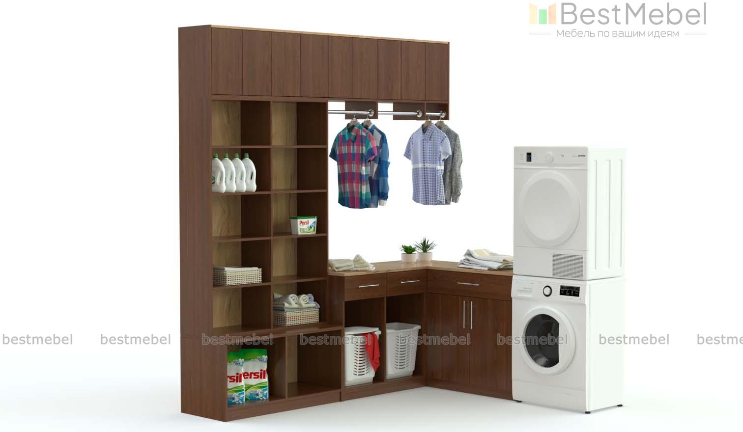 Прачечная Клайд 2 BMS оптимальна для меблировки просторных помещений и поможет создать эргономичный современный интерьер. Угловая композиция включает в себя тумбы с выдвижными ящиками для мелочей, распашным отделением и нишами, стеллажи с полками для бытовой химии, хозяйственных аксессуаров и домашнего текстиля, а также глухие антресольные секции и штанги. Лаконичная и выполненная в белом цвете, модель делает помещение визуально светлее. Купить прачечную Клайд 2 BMS приглашаем в наш интернет-магазин.