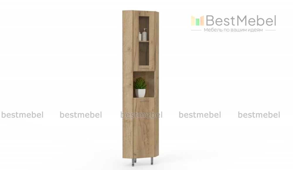 Шкаф-пенал в ванную Хетти 1 BMS сочетает в себе компактные размеры, современный дизайн и хорошую вместительность. Высокая угловая модель экономно использует пространство и гармонично вписывается даже в небольшие ванные комнаты. Два распашных отделения с полками для хранения уходовых средств дополнены расположенной в центральной части нишей. Купить шкаф-пенал в ванную Хетти 1 BMS приглашаем недорого в наш интернет-магазин с выбором цвета и фурнитуры.