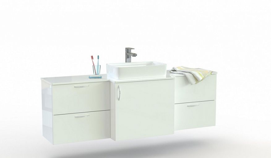 Тумба для ванной Дарти 5 BMS располагается по всей ширине комнаты и словно парит в воздухе за счет подвесной конструкции. Разноуровневая модель под раковину оборудована просторной столешницей, распашным отделением и четырьмя выдвижными ящиками для хранения уходовых средств, аксессуаров и бытовой химии. Белый цвет универсален для большинства современных интерьеров, а залогом долговечности станут влагостойкие материалы. Купить тумбу для ванной Дарти 5 BMS вы сможете в нашем интернет-магазине.