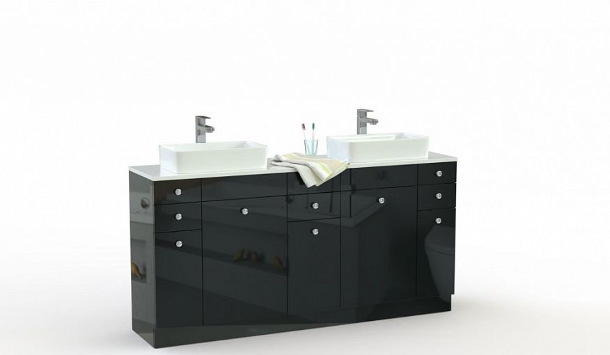 Тумба для ванной Эльза 4 BMS поможет установить сразу две раковины, сэкономив пространство и время на умывание. Широкая пристенная модель станет практичным решением для больших ванных комнат и легко вписывается в современный интерьер благодаря сочетанию черного глянцевого фасада с контрастной столешницей. Выдвижные ящики и распашные отделения разместят бытовую химию, уходовые средства и аксессуары. Купить тумбу для ванной Эльза 4 BMS по выгодной цене приглашаем в наш интернет-магазин.