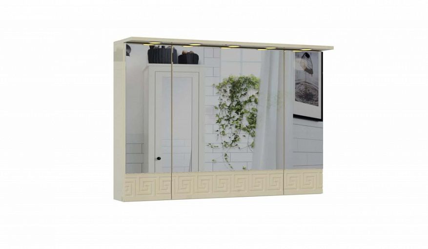 Зеркало в ванную Дайя 1 BMS станет стильным аксессуаром в современном минималистичном интерьере. Широкая подвесная модель совмещает в себе функции зеркала и шкафа для хранения уходовых принадлежностей, позволяя экономить пространство. Трехдверный шкаф с зеркальным фасадом декорирован ванильной глянцевой вставкой и оборудован вместительными внутренними полками. Купить зеркало в ванную Дайя 1 BMS с возможностью изготовления по индивидуальным размерам приглашаем в наш интернет-магазин.