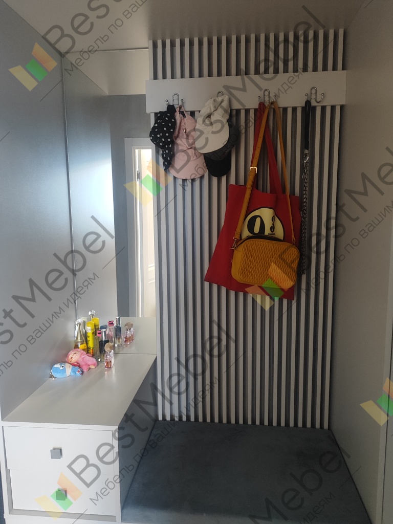 Заказ 00000103349.Взяли прихожую "Дублин 34 BMS" и в целом очень довольны, но сборка – это отдельная история. Главный плюс, который нас покорил – возможность заказать точный размер и цвет. У нас прихожая довольно узкая, и стандартные варианты просто не подходили. Сделали под наши замеры – встала идеально, как будто так и было задумано. Цвет выбрали серый – смотрится очень стильно, современно и правда делает маленькое пространство светлее и визуально просторнее. Функционально – все отлично. Места хранения действительно много: и верхние, и нижние шкафы легко вмещают все куртки, даже толстые зимние. Платяное отделение – спасение для вещей, которые не хочется мять. Очень удобна открытая вешалка с большим зеркалом – можно быстро что-то повесить или посмотреть на себя перед выходом, не бегая в ванную. Ящики внизу здорово организовали всю мелочь – перчатки, шапки, шарфы теперь не теряются. Качество на вид хорошее: фасады ровные, фурнитура пока не подводит (доводчики и шариковые направляющие). Но есть один существенный минус – сборка. Деталей очень много. Когда распаковали все коробки, немного растерялись от количества упаковок и элементов. Инструкция вроде понятная, но сам процесс требует времени, терпения и много свободного места. Собирать в одиночку – крайне сложно и долго.Нам с мужем пришлось потратить почти целый день, работая вдвоем, и это было довольно напряжно. Если вы один или не уверены в своих силах – советую сразу закладывать стоимость сборки мастера или звать очень опытного помощника.Если вы готовы к сборке (или закажете ее) – это отличный вариант для организации порядка в прихожей. Мы довольны результатом, хоть и пришлось попотеть. Выглядит дороже, чем стоит!