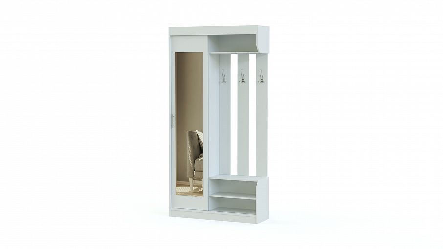 Прихожая-купе СРД-1 с зеркалом BMS - это платяной шкаф, открытая вешалка и обувница. Компактные размеры прихожей в сочетании с высокой функциональностью делают ее практичным выбором для малогабаритных помещений. Раздвижной створке не требуется свободное пространство для открывания, а ростовое зеркало на фасаде вполне заменяет отдельный аксессуар. Купить прихожую-купе СРД-1 с зеркалом BMS вы сможете на сайте нашего интернет-магазина, подобрав цвет по каталогу.