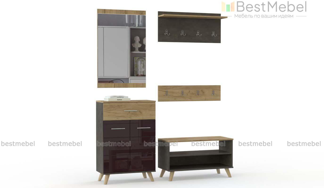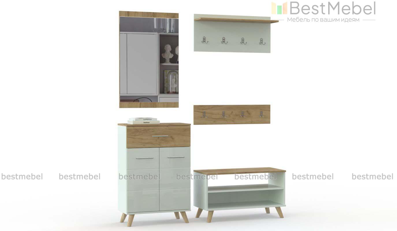 Прихожая Веста 14 BMS – визуально легкая и функциональная, подходит для оформления входной зоны в небольших помещениях. В стильной композиции с фрезерованным глянцевым фасадом и древесными акцентами нет ничего лишнего. Комод, дополненный зеркалом, открытая обувница и две навесные вешалки помогут вам удобно и эстетично разместить повседневную одежду, обувь и аксессуары. Купить прихожую Веста 14 BMS приглашаем в наш интернет-магазин с возможностью выбора цвета и размеров.