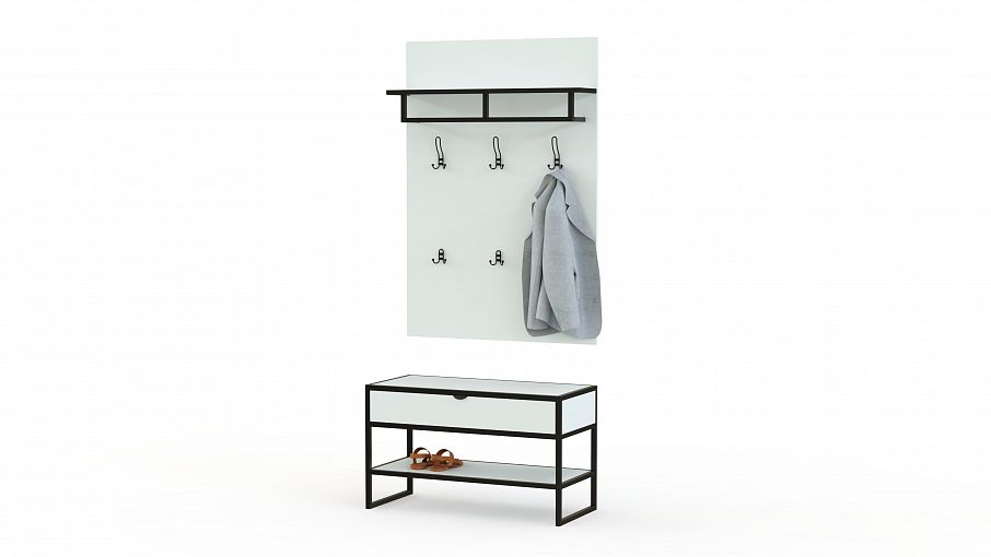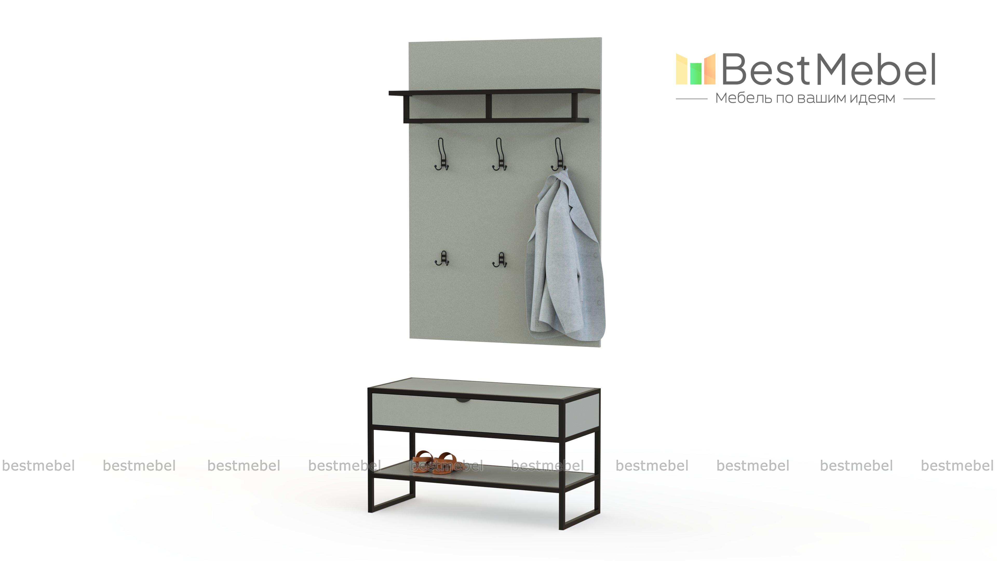 Вешалка Кейти 10 BMS выполнена в стиле лофт из износостойкой ламинированной плиты и окрашенного металла. Широкая низкая тумба оборудована открытой полкой для обуви и выдвижным ящиком, в котором удобно хранить средства ухода и прочие мелочи. Дополняет композицию навесная вешалка с двумя рядами крючков под одежду и аксессуары, штангой и верхней полкой. Купить вешалку Кейти 10 BMS вы сможете в нашем интернет-магазине, подобрав гармонирующее с интерьером цветовое решение.