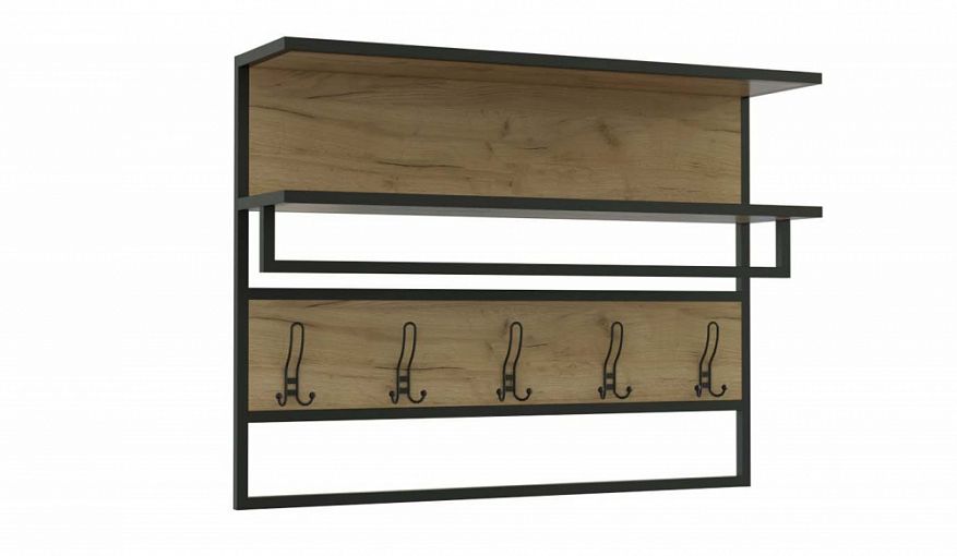 Вешалка Монти 4 BMS прекрасно смотрится самостоятельно и в комплекте с другой мебелью в стиле лофт. Горизонтальная навесная панель с пятью крючками для одежды и аксессуаров дополнена двухъярусной полкой под головные уборы и металлическим держателем для вешалок-плечиков. Сочетание износостойкой ламинированной плиты и металла делает конструкцию прочной и визуально легкой. Купить вешалку Монти 4 BMS вы сможете в нашем интернет-магазине с выбором цветового решения.