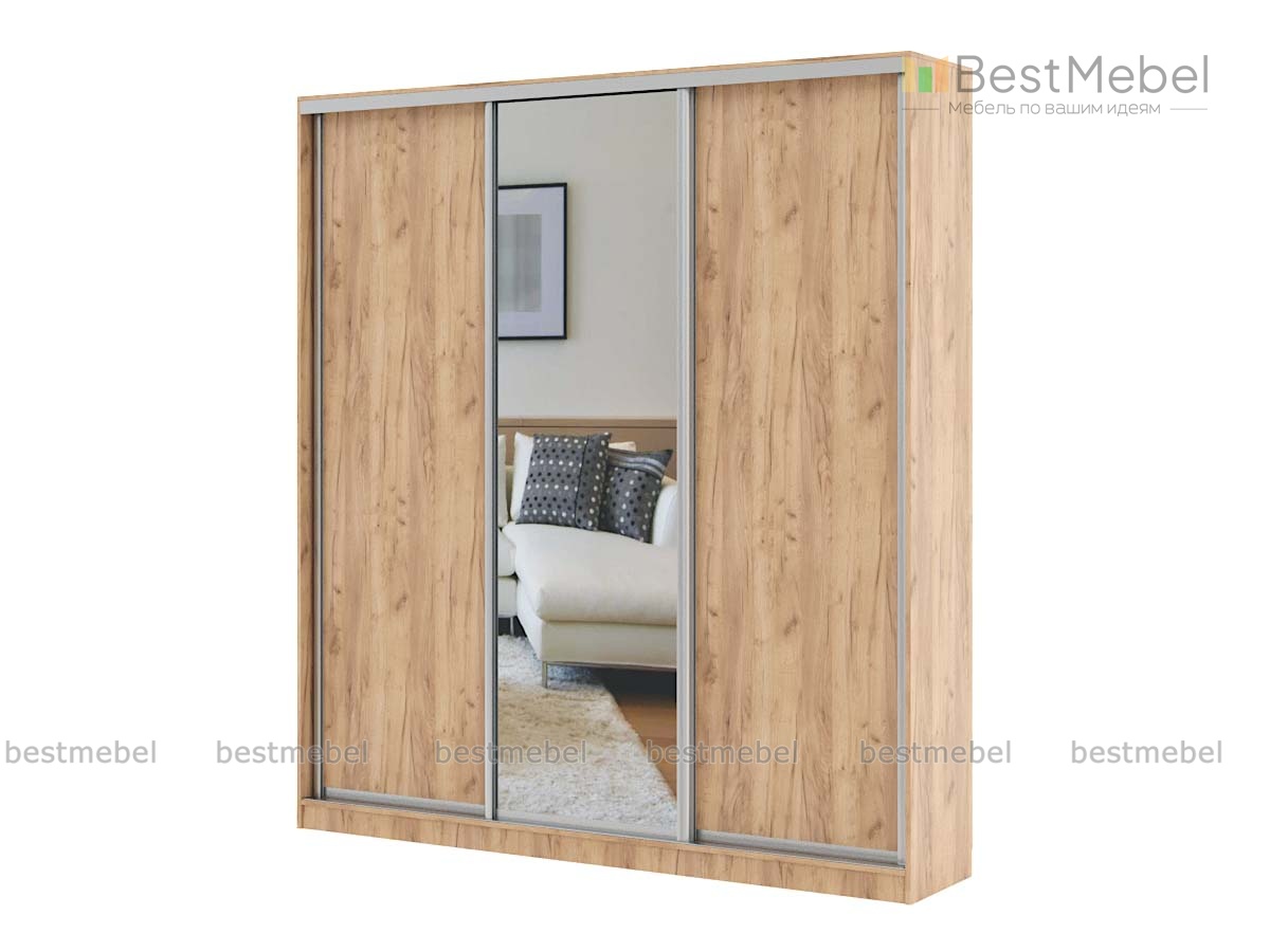 Шкаф-купе Ультра 3 BMS буквально сэкономит семейный бюджет и сохранит полезное пространство. Ведь богатое внутреннее наполнение позволит разложить многочисленные стопы белья всей семьи. Поэтому Вам не нужно будет докупать комод или дополнительный шкаф. Фасады безупречно ездят по направляющим, не создавая посторонних звуков. Центральный фасад предлагается дополнить зеркальной вставкой. Согласитесь, что с зеркалом намного удобнее и красивее.