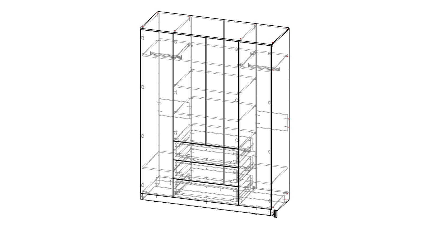 Шкаф распашной Мальм Malm 4 - это стильная простота и геометричные формы. За четырьмя распашными дверцами без лицевой фурнитуры скрыты платяные отделения и бельевые полки, а в центре располагаются три широких выдвижных ящика. Базовый цвет и отсутствие лишних деталей позволяют легко комбинировать шкаф с другой современной мебелью и практически любым декором. Шкаф выполнен без зазоров, открывается от нажатия и дверки и выдвижные ящики, дно ящиков усиленное, выполнено из лдсп.