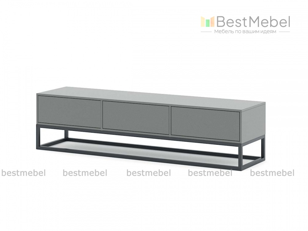 Тумба под ТВ Эстер 13 BMS поможет вам создать уютный интерьер в стиле лофт или индустриальном. Широкая низкая тумба оборудована просторной столешницей, на которой могут разместиться предметы декора и аппаратура, и тремя выдвижными ящиками для мелочей. Лаконичный корпус из ЛДСП в серых тонах располагается на прочном металлическом каркасе, визуально облегчающем конструкцию. Купить тумбу под ТВ Эстер 13 BMS приглашаем в наш интернет-магазин с выбором цвета по каталогу.