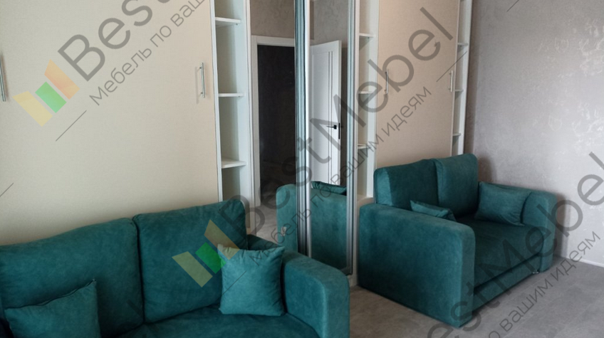 Шкаф-кровать с диваном Элли 5 BMS поможет максимально эффективно использовать небольшое пространство. Композиция из нескольких модулей-трансформеров, зеркального шкафа-купе, комода и открытых полок отличается высокой функциональностью и визуальной легкостью, не перегружая помещение лишними деталями. Благодаря сочетанию вертикальных и горизонтальных механизмов подъема вы получите комфортный и эргономичный интерьер. Купить шкаф-кровать с диваном Элли 5 BMS приглашаем в наш интернет-магазин, подобрав необходимые параметры.