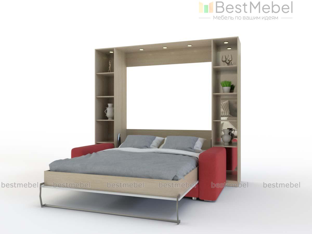 Шкаф-кровать Хлоя 16 BMS отличается сочетанием изящного дизайна и функциональности. Визуально легкая композиция 3 в 1 станет эффектным дополнением гостиной и сэкономит пространство. В центральной части композиции располагаются модуль-трансформер с откидной кроватью и двухместный диванчик без подлокотников, а по бокам – застекленные стеллажи. Спальное место легко раскладывается при помощи надежного вертикального механизма. Купить шкаф-кровать Хлоя 16 BMS вы всегда сможете в нашем интернет-магазине.