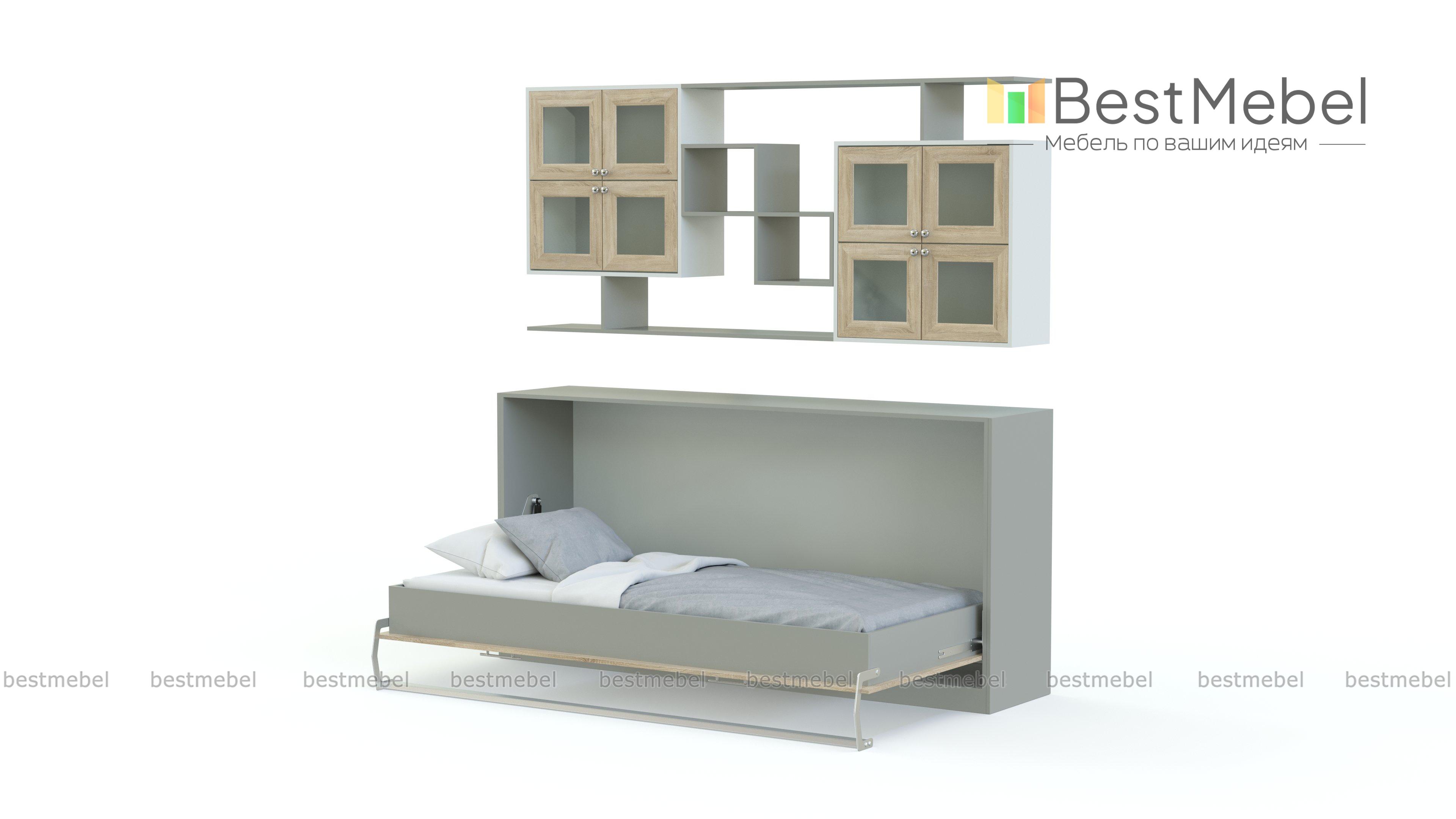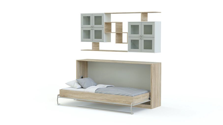 Шкаф-кровать трансформер Джули 34 BMS оптимально подходит для меблировки небольших и узких комнат. Композиция объединила шкаф с откидной кроватью, на широкой столешнице которого смогут разместиться важные мелочи, навесные открытые полки и застекленные шкафчики. Благодаря горизонтальному механизму подъема вы получаете полноценное спальное место, удобное для ежедневного сна и в качестве гостевого варианта. Купить шкаф-кровать трансформер Джули 34 BMS приглашаем в наш интернет-магазин по отличной цене.