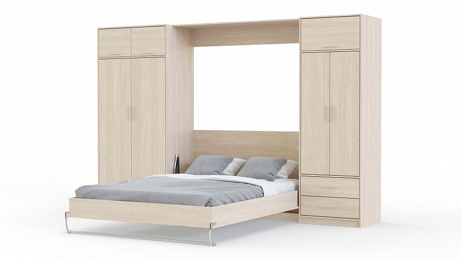 Шкаф-кровать трансформер Рада BMS – это лаконичная современная стенка в светлых древесных тонах, дополненная модулем-трансформером. Высокий шкаф с антресолью, распашными отделениями и ящиками компактно разместит вещи, а при необходимости центральная откидная часть легко опускается вниз и превращается в комфортную кровать. Простая в эксплуатации и выполненная из износостойких материалов, модель надолго сохранит функциональность и эстетичный вид. Купить шкаф-кровать трансформер Рада BMS по доступной цене приглашаем в наш интернет-магазин.