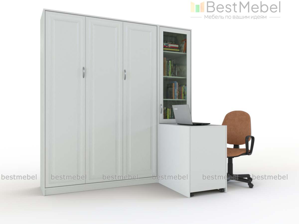 Шкаф-кровать трансформер Рон BMS – это элегантный классический дизайн и современная функциональность. Многофункциональная композиция 3 в 1 объединила распашную витрину, тумбу с практичным выкатным столиком и скрытую за имитацией шкафа откидную кровать. При помощи вертикального механизма вы легко получаете комфортное спальное место. Филенчатые фасады, выполненный в белом цвете, делают небольшое помещение визуально просторнее. Купить шкаф-кровать трансформер Рон BMS и сэкономить полезную площадь вам поможет наш интернет-магазин.