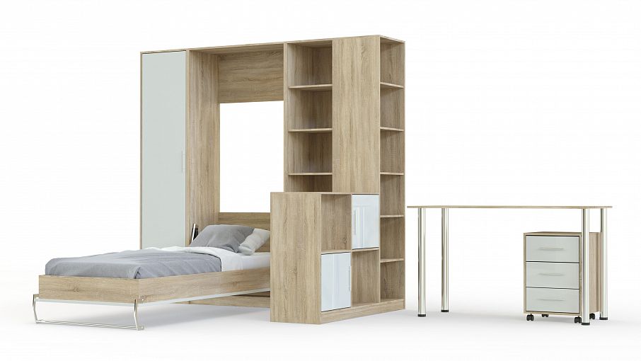 Шкаф-кровать трансформер Сена BMS поможет значительно сэкономить пространство и разделить помещение на функциональные зоны. Современная композиция 3 в 1 объединила продуманную до мелочей систему хранения, зону отдыха и рабочее место. Угловая модель из платяного шкафа и книжных стеллажей дополнена секцией с откидной кроватью и письменным столом. Выполненный в спокойных древесных тонах, комплект гармонично впишется в современные интерьеры и создаст комфортную обстановку для отдыха, работы или учебы. Купить шкаф-кровать трансформер Сена BMS выгодно приглашаем в наш интернет-магазин.
