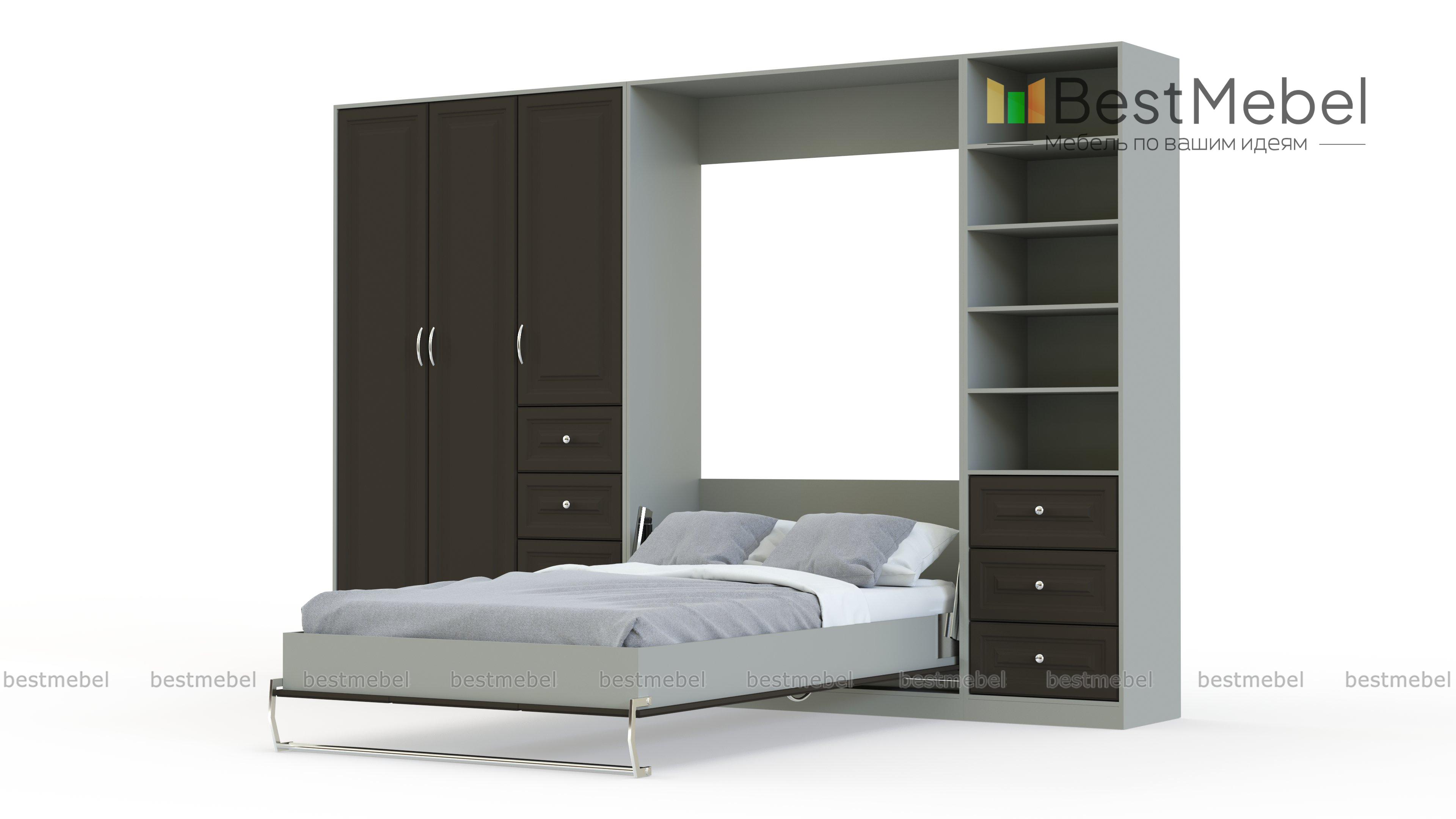 Шкаф-кровать трансформер Шекспир BMS выполнена в духе современной классики и станет прекрасной альтернативой привычной мебели в условиях экономии пространства. Эффектная композиция с фрезерованными рамочными фасадами выполнена в белом цвете и визуально облегчает интерьер. Удобная система хранения, включающая в себя выдвижные ящики и распашные отделения для белья и одежды, дополнена модулем-трансформером, с помощью которого вы легко получите полноценную двуспальную кровать. Купить шкаф-кровать трансформер Шекспир BMS приглашаем в наш интернет-магазин.