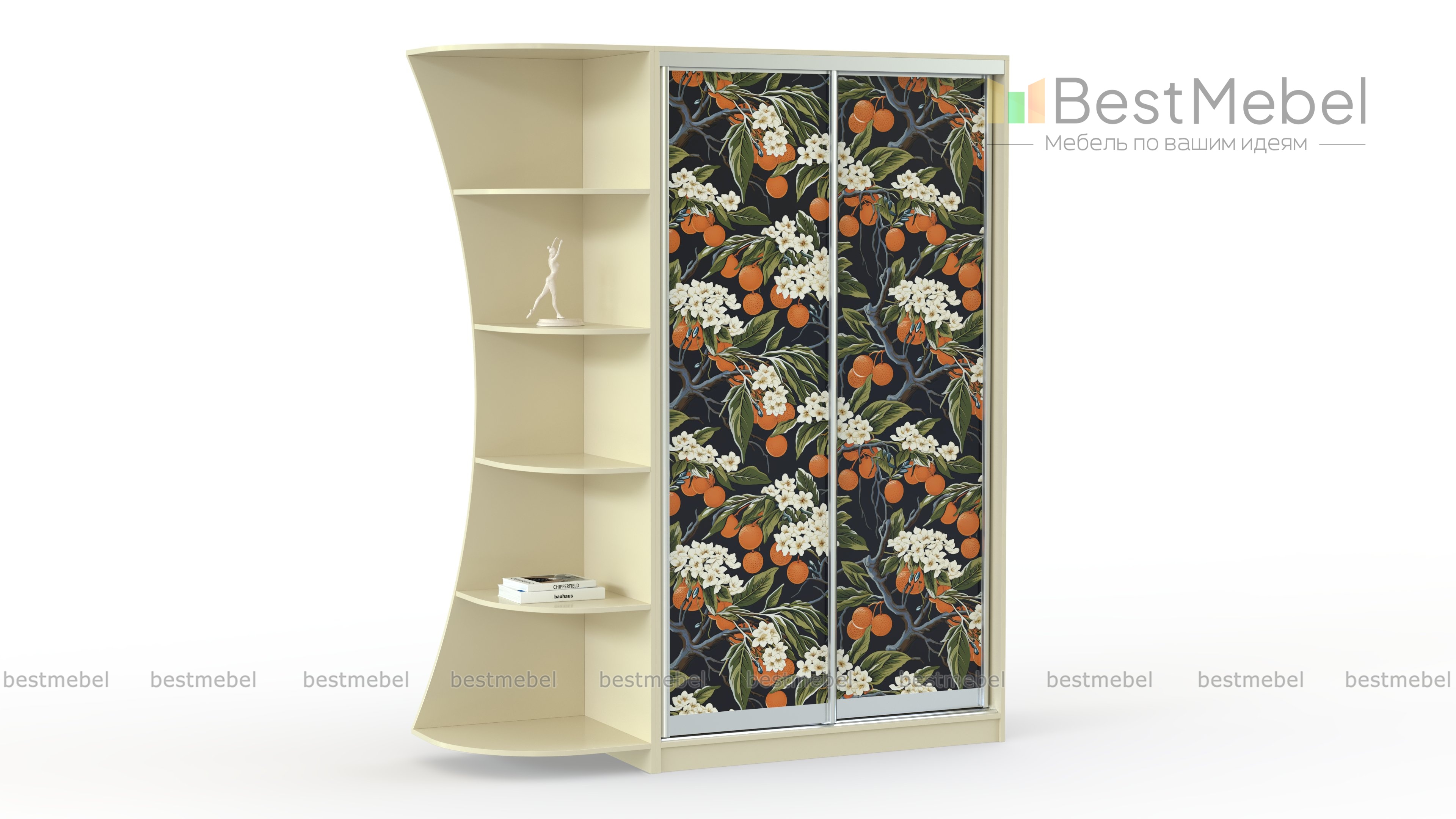 Шкаф-купе Астра 15 BMS - это необычная форма с глубоким боковым вырезом, раздвижная конструкция и сочный фруктовый принт. Двухдверная модель, украшенная стойкой фотопечатью, дополнена стеллажом со скругленными книжными полками. В этом небольшом шкафу будет удобно хранить одежду и обувь, а также размещать на виду любимые книги, полезные мелочи и интересный декор. Купить шкаф-купе Астра 15 BMS с возможностью выбора цвета и размеров приглашаем к нам в интернет-магазин.