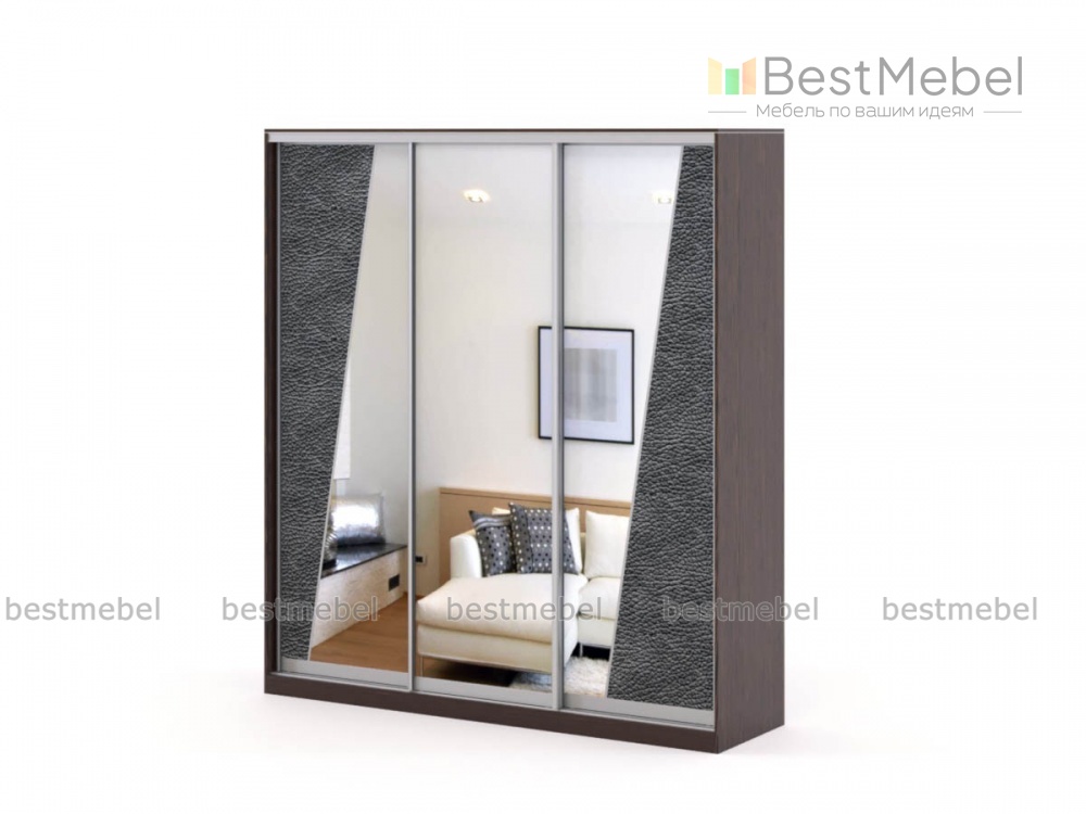 Шкаф-купе Аурум 13 кожа BMS станет универсальным решением для любого из помещений дома благодаря удобным средним габаритам и элегантному современному дизайну. В оформлении фасада шкафа скомбинированы зеркала и диагональные вставки в текстурной экокоже, создавая в интерьере интересный акцент. Вместительное трехдверное отделение удобно для хранения гардероба и постельного белья. Купить шкаф-купе Аурум 13 кожа BMS с учетом оптимальных характеристик приглашаем в наш интернет-магазин.