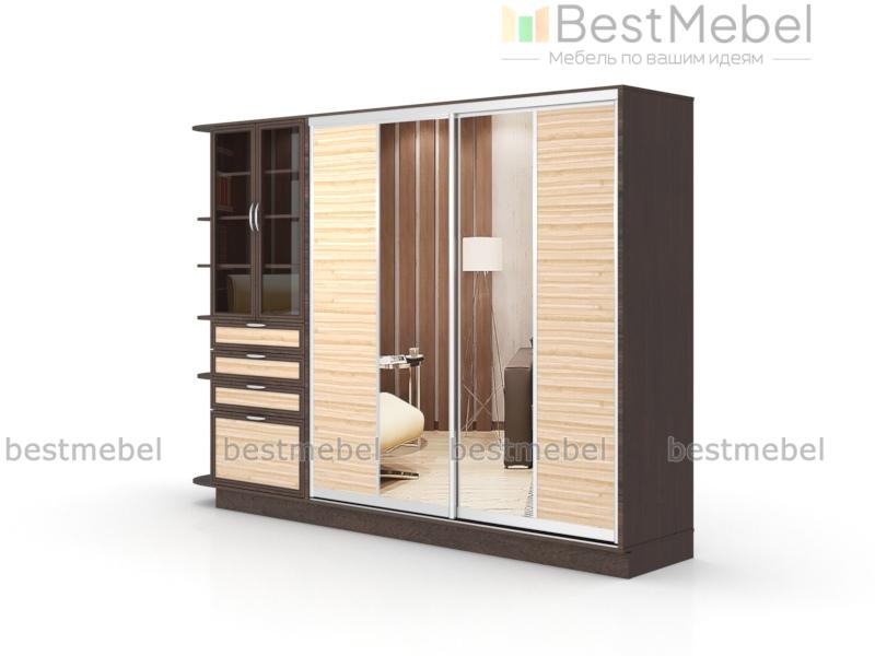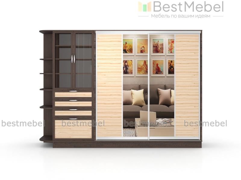 Шкаф-купе Бамбук-2 BMS отличается крупными габаритами и комбинированной конструкцией, которая делает модель прекрасным выбором для интерьера гостиной. Композиция включает в себя четырехдверное купе с зеркалами и секциями для белья и одежды, книжный шкаф с выдвижными ящиками в основании и торцевой стеллаж. Сочетание классических рамочных фасадов с оригинальными светлыми вставками, позволит вписать шкаф и в классическую, и в современную меблировку. Купить шкаф-купе Бамбук-2 BMS приглашаем в наш интернет-магазин с учетом необходимых параметров.