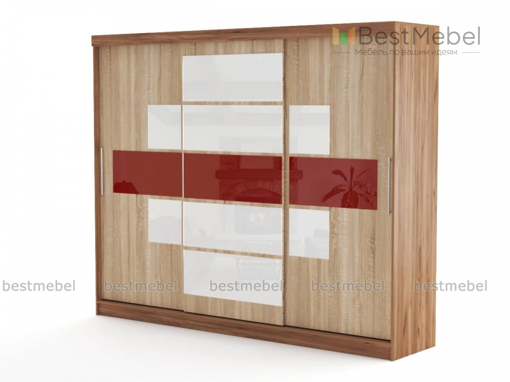 Шкаф-купе ЭКОНОМ-23 BMS привлекает внимание современным дизайном, функциональностью и демократичной ценой. Трехдверная вместительная модель станет отличным выбором как для небольших, так и для просторных помещений, сэкономит пространство и без труда разместит все необходимое. Фасады натуральных оттенков с имитацией массива дерева декорированы яркими вставками окрашенного стекла. За раздвижными дверцами – секция с полками и платяное отделение со штангой. Купить шкаф-купе ЭКОНОМ-23 BMS вы сможете быстро и просто в нашем интернет-магазине.