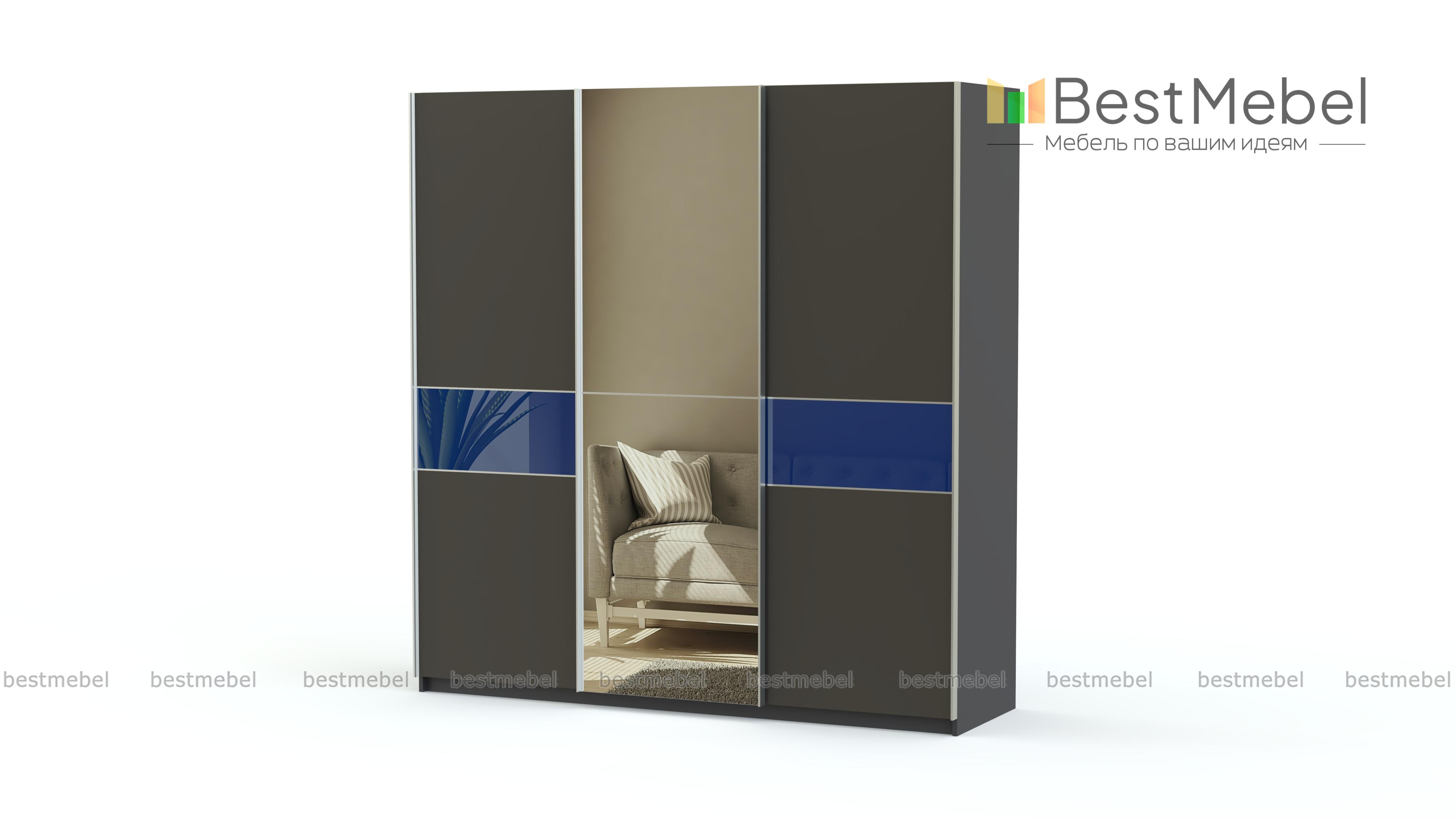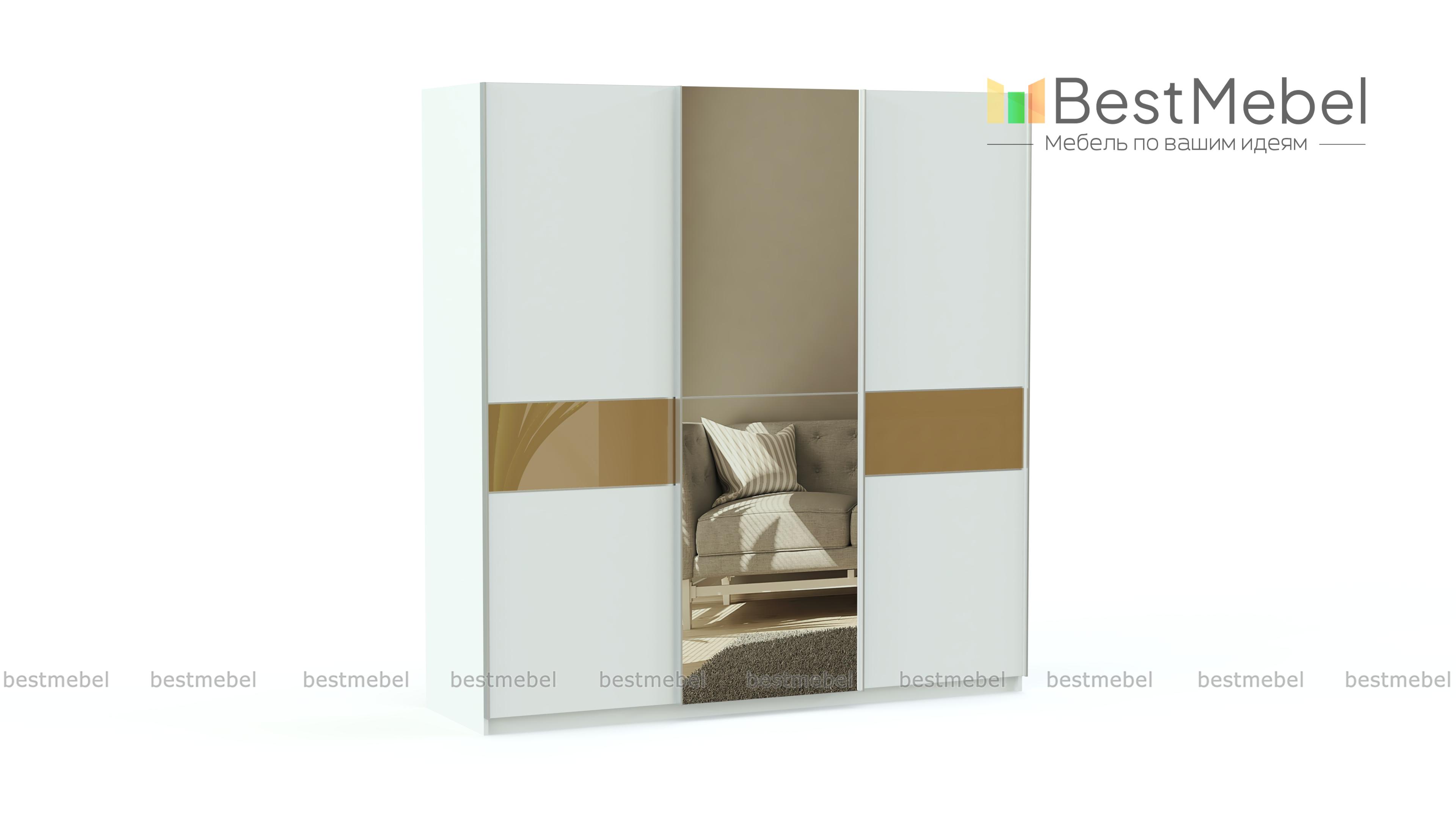 Вместительный трехстворчатый шкаф-купе Элит 53 BMS смотрится легким за счет светлых, с яркой вставкой фасадов и подвесной системы дверей. Зеркальная дверь не только удобна, но придаст помещению объема. Просторные платяное и бельевое отделения, оборудованные штангой и полками, максимально удобны для размещения большого количества вещей. Цветное стекло фасадов практично и устойчиво к повреждениям. В нашем интернет-магазине вы сможете подобрать для шкафа оптимальные параметры.