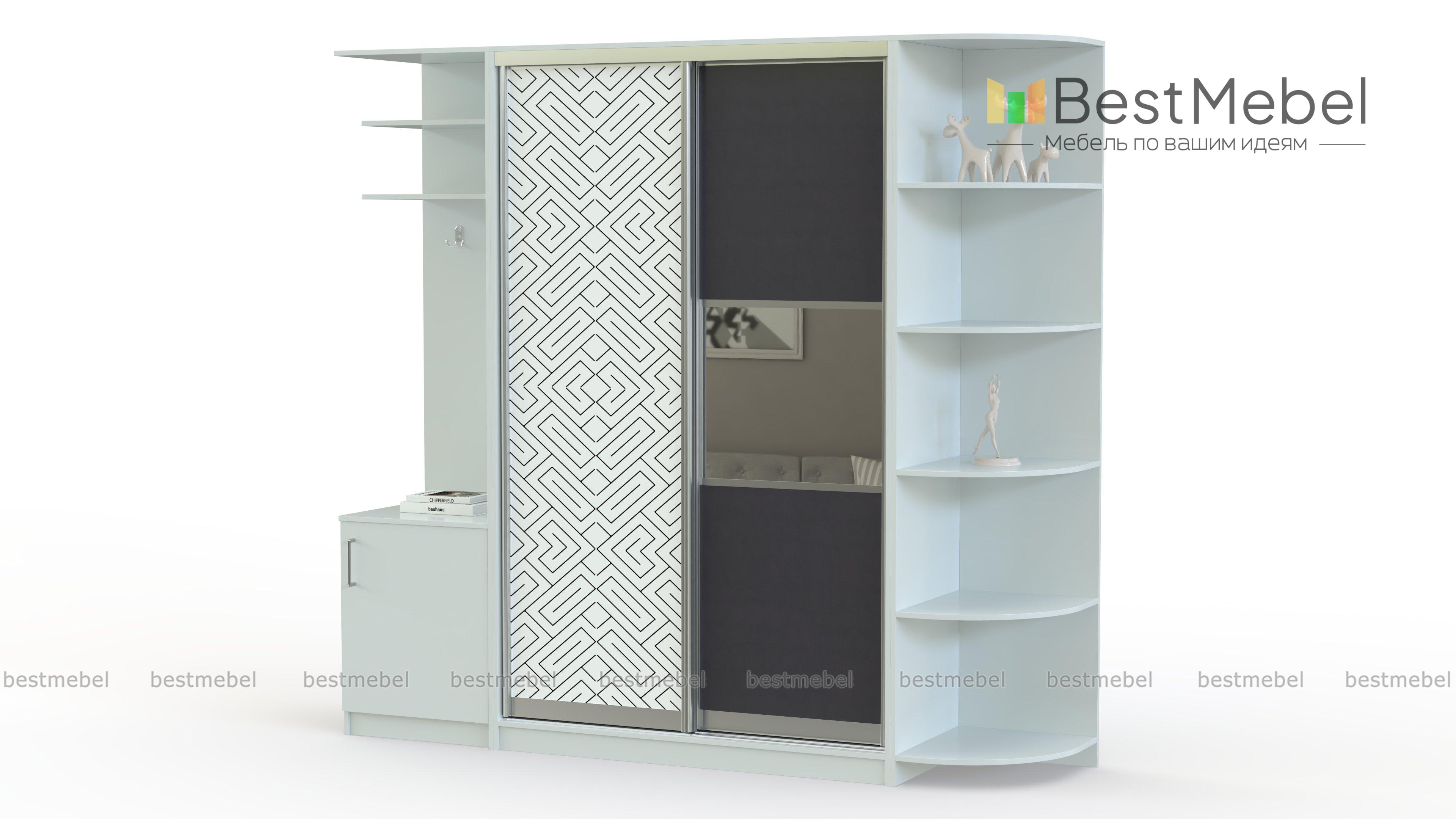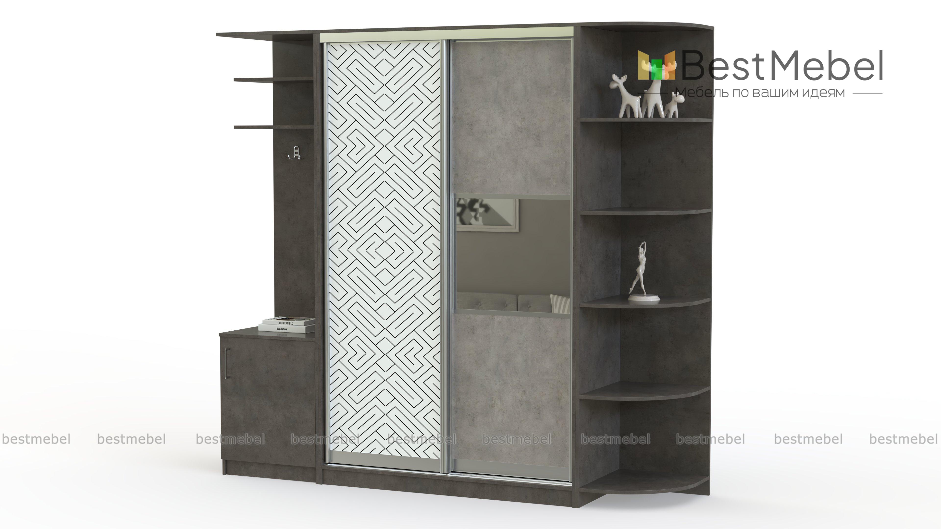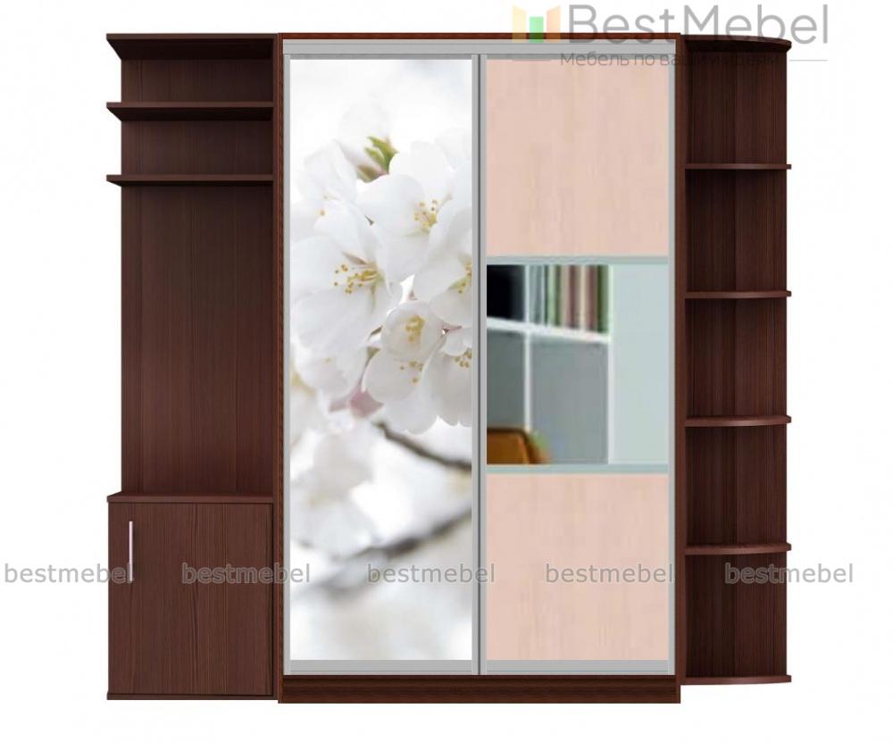 Шкаф-купе Франс 10 BMS лаконичен по форме и смотрится эффектно благодаря сочетанию темных и светлых тонов, зеркальной вставки и графичной светлой фотопечати. Двухдверный платяной шкаф, дополненный радиусным стеллажом и открытой секцией с распашной тумбой и полками под головные уборы, оптимально подходит для меблировки прихожей. Светлый фасад визуально расширяет пространство, а раздвижные дверцы экономно используют полезную площадь. Купить Шкаф-купе Франс 10 BMS приглашаем на сайт нашего интернет-магазина.