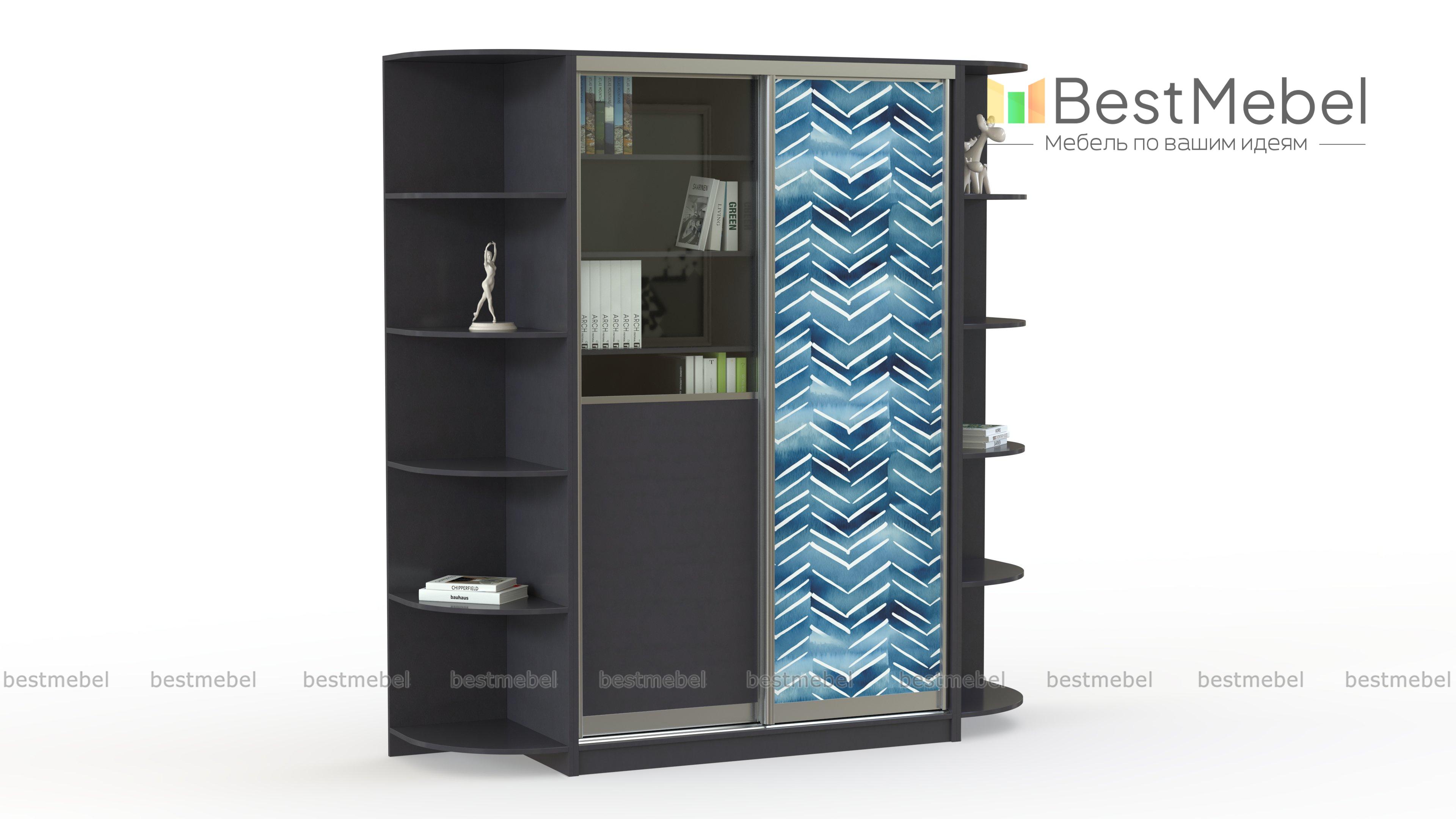 Шкаф-купе Франс 20 BMS выполнен в нейтральном темном оттенке, а роль стильного акцента играет геометрический принт. Наличие глухой платяной секции и полок за дверцей со стеклом позволяет хранить как одежду, так и книги, рабочие материалы и бытовые мелочи. Завершенный вид модели придают два симметрично расположенных радиусных стеллажа, на полках которых эффектно смотрятся интерьерные аксессуары. Купить шкаф-купе Франс 20 BMS вы всегда сможете в нашем интернет-магазине, подобрав цвета и размеры.