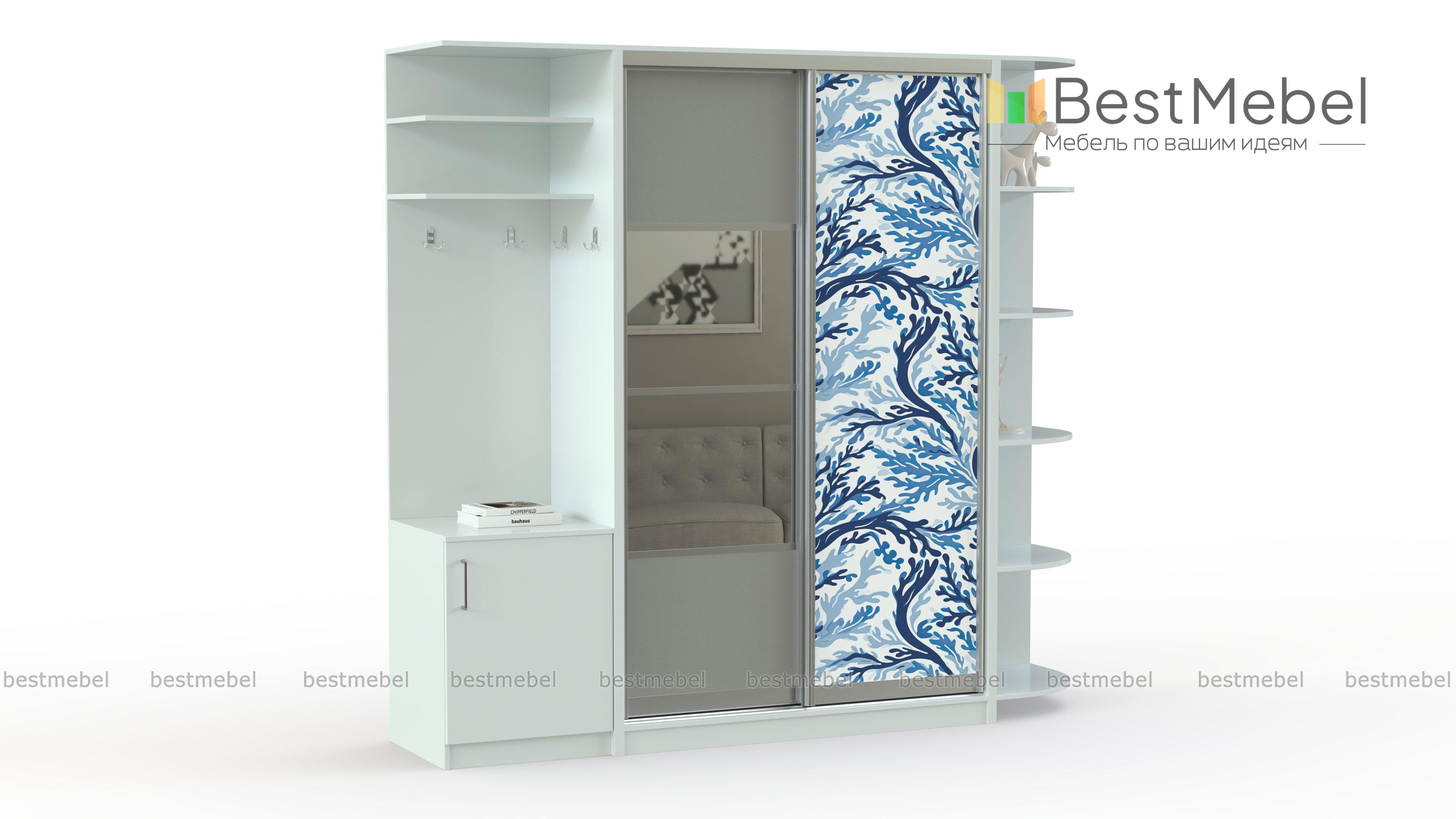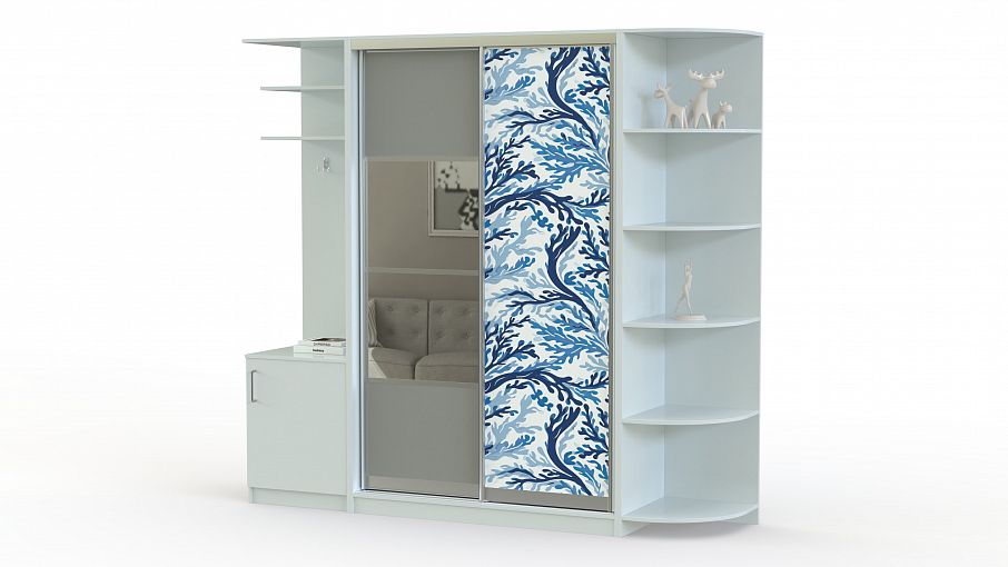 Шкаф-купе Франс 8 BMS оборудован двухдверным платяным отделением, а для удобного размещения аксессуаров, обуви и всевозможных мелочей дизайнеры добавили торцевой стеллаж и модуль с тумбой, крючками и открытыми полками. Визуально легкая модель в светлых тонах станет идеальным решением для обустройства входной зоны. В оформлении фасада использованы зеркала и «морской» фантазийный принт. Купить шкаф-купе Франс 8 BMS с учетом необходимых размеров приглашаем в наш интернет-магазин.