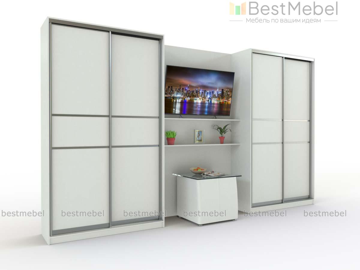 Шкаф-купе Ганг 6 BMS – отличный выбор для просторной гостиной или спальни. Модель минималистичного современного дизайна выполнена в белом цвете с профилем оттенка серебро. Выгодно использовать пространство и сэкономить на лишней мебели поможет композиция, состоящая из двух двухдверных шкафов-купе и секции с открытыми полками. Продуманное сочетание элементов позволит вам компактно разместить гардероб, а также оформить ТВ-зону. Купить шкаф-купе Ганг 6 BMS приглашаем в наш интернет-магазин, подобрав оптимальные параметры.
