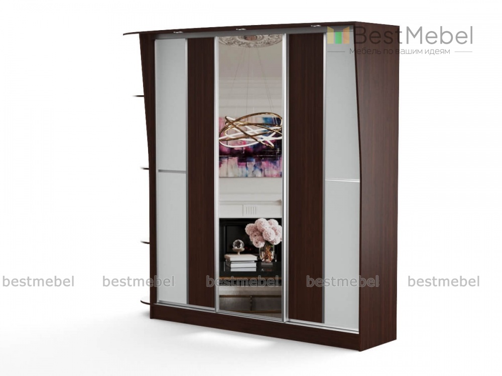 Шкаф-купе Концепт-14.1 BMS – вместительная трехдверная модель, привлекательная оригинальным современным дизайном. Необычный вид шкафу придает торцевой стеллаж с фигурно вырезанной боковиной. Фасады украшает зеркальная дверца и сочетание контрастных древесных оттенков. Внутреннее наполнение из отделения со штангой для вешалок, антресоли и секции с полками позволит упорядочить хранение предметов гардероба. Купить шкаф-купе Концепт-14.1 BMS, подобрав оптимальные параметры, приглашаем в наш интернет-магазин.