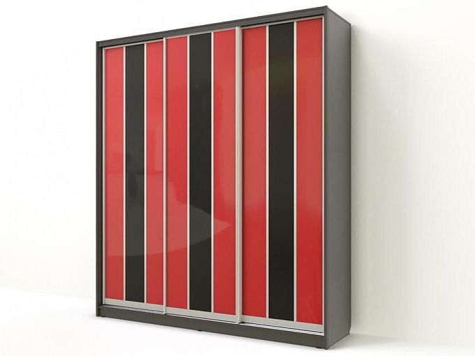 Шкаф-купе Лика BMS с тремя дверями имеет стильный презентабельный дизайн, который преобразит любое помещение. Фасад шкафа оформлен вертикальными полосами закаленного стекла черного и красного цветов. Внутри шкаф обустроен вместительными полками и хромированной штангой для вешалок. По желанию могут быть установлены выдвижные ящики на телескопических направляющих, а также дополнительные полки.