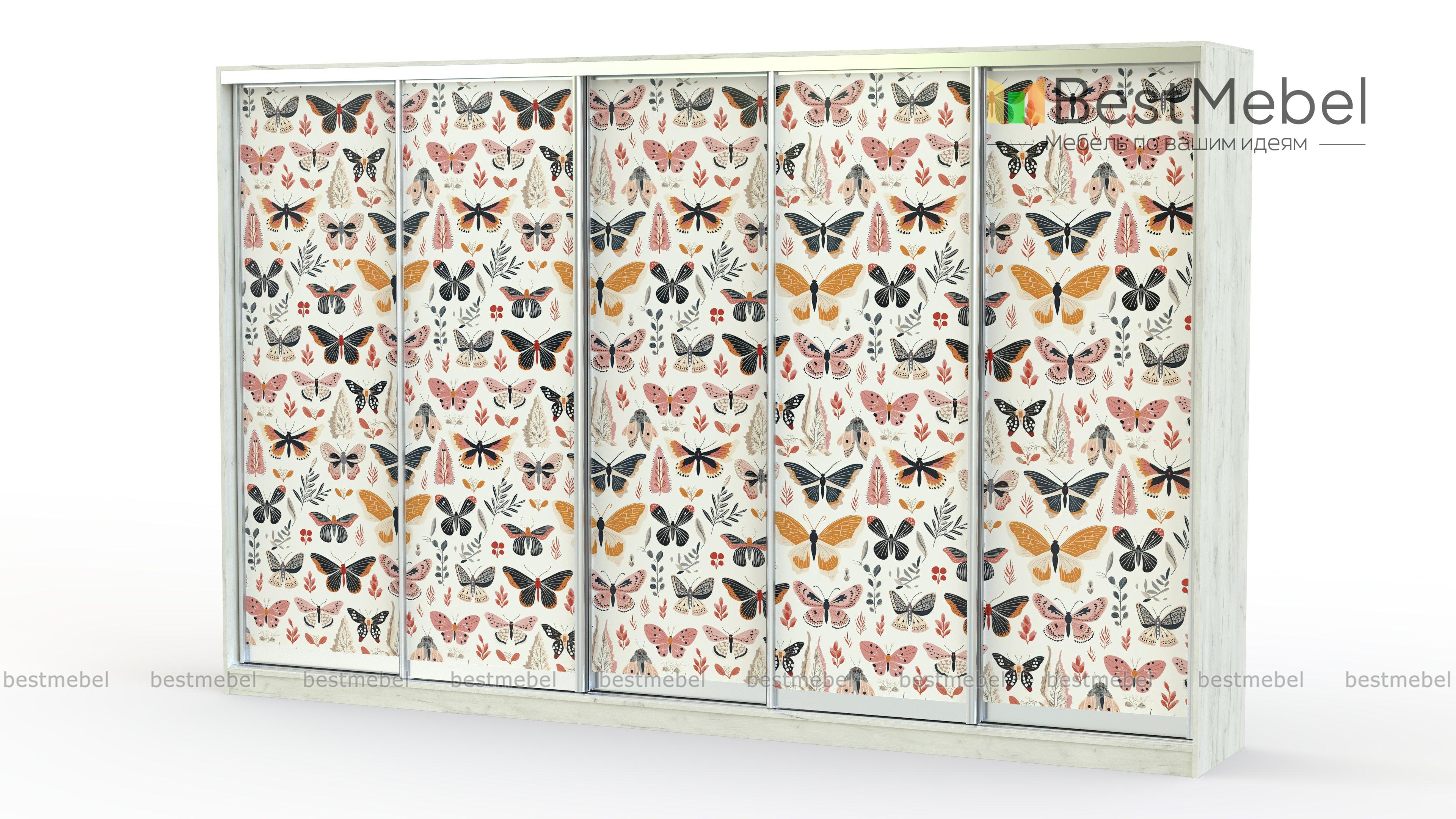 Шкаф-купе Маркиз 47 BMS украшен фотопечатью с орнаментом «бабочки», воплощая современные дизайнерские тренды. Пятидверная конструкция станет отличным дополнением к уютному пространству детской комнаты или спальни. За глухими раздвижными створками будут скрыты одежда, обувь и разнообразные аксессуары, а комната примет аккуратный вид. Купить шкаф-купе Маркиз 47 BMS вы сможете на сайте нашего интернет-магазина, подобрав размеры, цвета и наполнение.