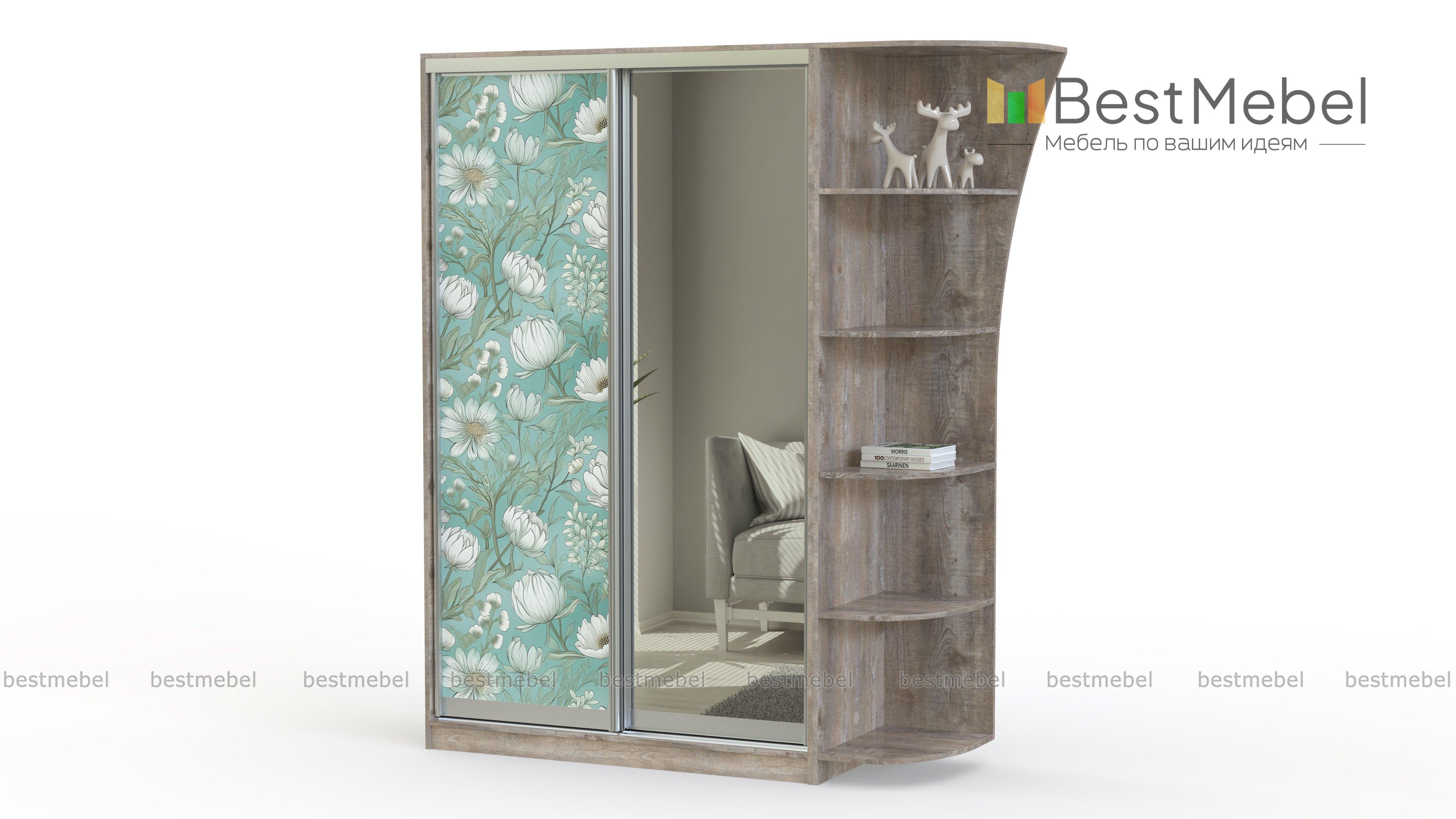 Шкаф-купе Марко 15 BMS сочетает в оформлении фасада нежность цветочного принта и зеркальное полотно. Комбинированная модель для спальни, гостиной или прихожей – это двухдверное платяное отделение и фигурно вырезанный стеллаж со скругленными полками для книг, статуэток и полезных мелочей. Практичная конструкция обеспечит удобное хранение вашим вещам, а дизайн украсит современный интерьер. Купить шкаф-купе Марко 15 BMS приглашаем в наш интернет-магазин с учетом нужных размеров.